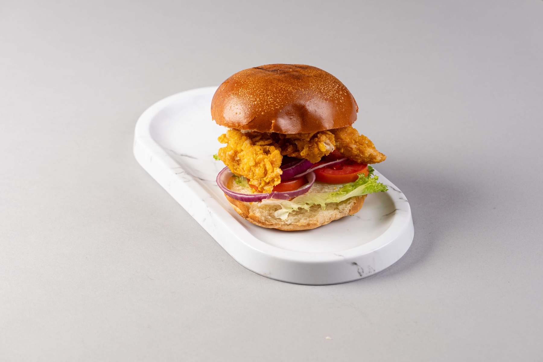 קריספי ציקן בלחמניית בריוש בתוספת צימצורי ריבת בצל ואיולי ציפוטלה